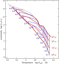 Трек Хаяси[1] — почти вертикальный эволюционный трек в диаграмме Герцшпрунга — Рассела, проходящий в направлении к главной последовательности через фазы, когда звезда большей частью или полностью находится в конвективном равновесии. В 1961 году Тюсиро Хаяси доказал, что если звезда полностью конвективна, то при медленном сжатии её температура практически не меняется, а светимость падает — это соответствует движению вертикально вниз на диаграмме, и этот путь звезды называется треком Хаяши.