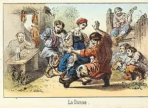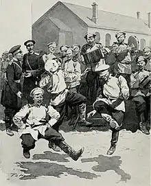Трепа́к (укр. тропак) — старинная русская пляска, распространённая также на Украине[1]. Исполняется в быстром темпе, двудольном размере. Основные движения — дробные шаги, притоптывания и присядка с выбрасыванием ног. Основное положение рук на поясе. Движения сочинялись исполнителем на ходу. По свойствам имеет много общего с «Камаринской» и «Барыней»: либо одиночная мужская пляска, либо перепляс. Но, в отличие от них, трепак своего общепринятого напева не имел.