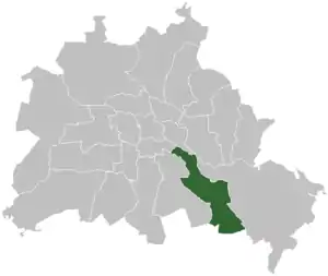 Округ Трептов состоял из районов Альт-Трептов, Плентервальд, Баумшуленвег, Йоханнисталь, Нидершёневайде, Альтглиникке, Адлерсхоф и Бонсдорф.