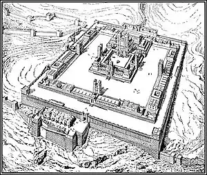 - Крупнейший еврейский комментатор Торы и Талмуда Раши[3] считает, что Храм чудесным образом появится уже полностью отстроенным, останется лишь пристроить ворота и укрепления.