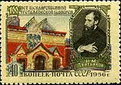100 лет Государственной Третьяковской галерее. Почтовая марка, СССР, 40 коп., 1956 год, (ЦФА [АО «Марка»] № 1907)