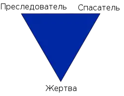 - англ. Karpman drama triangle; другое название — «треугольник судьбы»Треугольник судьбы — Преследователь, Избавитель, Жертва. А мы живем и не подозреваем! (недоступная ссылка). psychologblog.ru - Блог о психологии (5 ноября 2012). Дата обращения: 5 октября 2017. Архивировано 5 октября 2017 года.