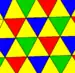 Треугольные мозаики могут быть идентичны {3,6} топологии правильной мозаики (6 треугольника в каждой вершине). Существует 5 вершинно транзитивных вариантов с одинаковыми гранями (транзитивных по граням). С точки зрения симметрии все грани имеют одинаковый цвет, раскраска же на рисунках представляет положение в сетке[6].
