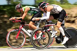 В Олимпийском триатлоне на велоэтапе драфтинг разрешён, то есть спортсмены могут ехать в группе.