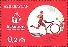 Триатлон на почтовой марке Азербайджана, посвящённой Европейским играм 2015