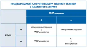 Для PD-L1-положительного ТНРМЖ рекомендовано комбинировать ингибиторы иммунных контрольных точек (иммунотерапию) и химиотерапию. Для PD-L1-отрицательного рака предпочтительным вариантом лечения остаётся химиотерапия[1].