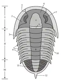 Морфология тела трилобитов полностью соответствует организации типа членистоногих (ближайшие современные аналоги — мокрицы и мечехвосты[2]). Строение тела трилобитов несёт свидетельства приспособленности к придонному образу жизни: мощный панцирь (экзоскелет), уплощённость, сложные глаза на верхней стороне тела, расположение рта и ног на брюшной стороне тела.