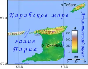 Респу́блика Тринида́д и Тоба́го (англ. Republic of Trinidad and Tobago [ˈtrɪnɨdæd ən təˈbeɪɡoʊ]) — островное государство в южной части Карибского моря, недалеко от побережья Венесуэлы. Оно состоит из двух крупных островов — Тринидада и Тобаго, а также большого количества мелких островов. Страна расположена в 10,6 километра (7 милях) к северу от Венесуэлы и немного южнее Гренады, между 10°2′ — 11°12′ северной широты и 60°30′ — 61°56′ западной долготы.