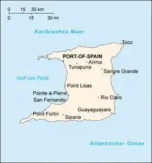 Население 2011 году составляет 1 267 145 человек.[1] Крупнейшие города — Чагуанас, Порт-оф-Спейн (столица Тринидада и Тобаго), Сан-Фернандо, Арима, Сент-Джозеф (первая столица Тринидада) и др.
