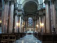 В капелле Сан-Карло-Борромео (Св. Карла Борромея) алтарная картина изображает Мадонну, представляющую Младенца святым Карло Борромео, Доменико ди Гусману, Филиппо Нери и Феличе да Канталиче. Работа живописца Гийома Куртуа, известного как Боргоньоне.