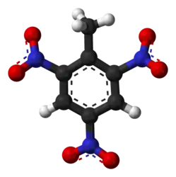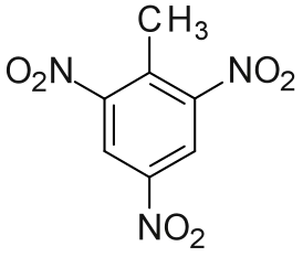 Тринитротолуо́л (2,4,6-тринитротолуол, 2,4,6-тринитрометилбензол, тротил, тол, TNT) — одно из наиболее распространённых бризантных взрывчатых веществ. Представляет собой желтоватое кристаллическое вещество с температурой плавления 80,85 °C (плавится в очень горячей воде).