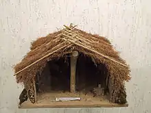 Жилища: наземные строились из дерева и глины с примесью половы (глинобитные) с обожжёнными глиняными полами и полуземлянки. Среднее число жилищ в поселении составляло от 30 до 40. Характерны многосемейные жилища с многочисленными перегородками и очагами (были выявлены и сводчатые печи) в каждом помещении, а также наличие в доме особого жертвенного места. Иногда культовые места находились в каждой камере (комнате). Жертвенники могли быть округлыми в плане и крестообразные. Встречаются двухэтажные дома. Известны модели жилищ с двускатной крышей и круглыми окнами[18][19];