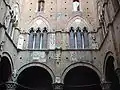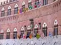 Трифора на готическом фасаде ратуши, Феррара, Италия.