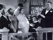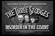 ![]() Три балбеса в 1937 году. Вверху Кёрли Ховард, внизу слева Ларри Файн, справа Мо Ховард | |