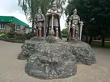 Три богатыря — собирательное название главных героев русcких былин, богатырей — Ильи Муромца, Добрыни Никитича и Алёши Поповича.