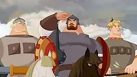 ![]() Главные герои (кадр из мультфильма Три богатыря и Шамаханская царица) | |