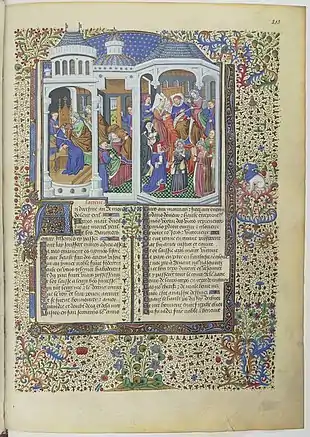 ![]() Титульный лист рукописи с портретом автора, Библиотека Лауренциана, Plut. 73.39, fol. 80r | |