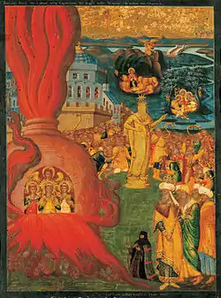 Тема трёх отроков в пещи огненной пользовалась на Руси особым вниманием. Она нашла отражение в частом повторе сюжета во фресковом цикле.