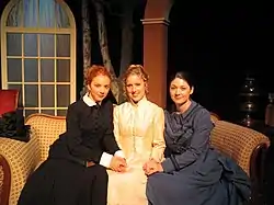 ![]() Обложка первого отдельного издания пьесы (1901 год) с портретами первых исполнительниц в Художественном театре: М. Г. Савицкая (Ольга), О. Л. Книппер (Маша) и М. Ф. Андреева (Ирина). | |