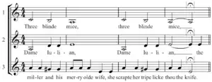 | Мелодия песни «Три слепых мышки». | |