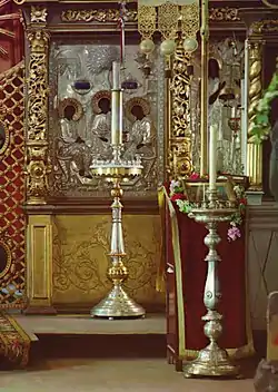 - Далее она поновлялась в 1777 году при митрополите Платоне во время такой же переделки Троицкого иконостаса