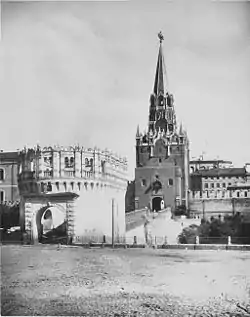 Тро́ицкая ба́шня (ранее — Богоявле́нская, Ризополо́женская, Зна́менская, Куре́тная) — центральная проездная башня северо-западной стены Московского Кремля, выходит к Александровскому саду. Построена в 1495—1499 годах итальянским архитектором Алевизом Фрязином Старым. Входила в единое звено обороны с Кутафьей башней и Троицким мостом. В Средние века служила «семейным царским и патриаршим выездом»[1][2][страница не указана 211 дней][3][4]. Самая высокая из кремлёвских башен.