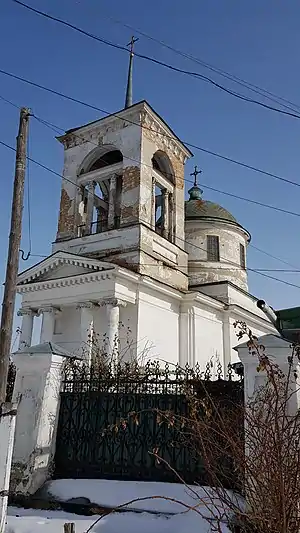 Каменная, однонефная, однокупольная, безстолпная, крестообразная в плане церковь, удлинённая по оси запад—восток. С западной стороны располагается притвор с колокольней, на первом ярусе которой — главный вход. Вход украшен четырёхколонным портиком, увенчанный треугольным фронтоном. Колокольню завершает шпиль с крестом. После значительных перестроек в 1830-е годы приобрела черты классицизма. Сохранилась масляная роспись 19 века, сделанная поверх предыдущей.
