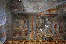 Три арочных входа в храм с галерей обрамлены прекрасными белокаменными перспективными порталами. Их колонки, перебитые резными дыньками, на высоких профилированных базах и с карнизиками-капителями, поддерживают архивольты, коробовый на южном портале и килевидные на остальных. Аналогичную последним форму имеет портал ризницы, расположенной в юго-западной части галереи. Роспись в соборе была начата на западной галерее вскоре после окончания строительства[9]. В летний сезон 1654 года успели написать фигуры архангелов по сторонам портала, в простенках — Страшный суд, Видения Иоанна Лествичника и Евлогия и композиции в люнетах над ними. Начавшаяся моровая язва прервала работы, к ним вернулись только через 30 лет. В 1684 году артель знаменитого костромского знаменщика Гурия Никитина полностью расписала четверик собора. На северной стене, слева от двери, в орнаментальном клейме сохранился перечень имен всех, кто принимал участие в этой работе.