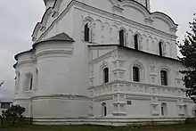 - Аналогичный прием использован в наружном декоре Преображенского собора Спасо-Геннадьева монастыря (ок. 1650) и церкви Ильи Пророка на Городище (1649/1663).