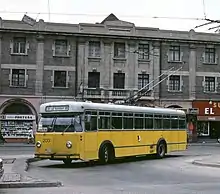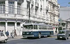 ![]() Один из троллейбусов Вальпараисо производства Pullman-Standard 1952 года выпуска в 1996 году. Тогда он имел оригинальную окраску и обслуживался частной операционной компанией ECTE. | |