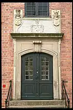 В архитектуре преобладают элементы XVI века. В частности узнаваемые фронтоны со ступенчатыми щипцами.