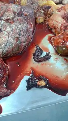 Хирургическое удаление тромба (тромбэктомия) рассматривают как альтернативный метод лечения ТЭЛА высокого риска, когда тромболитическая терапия противопоказана. Больным с высоким риском рецидива и при абсолютных противопоказаниях к антикоагулянтной терапии возможна установка кава-фильтров[23]. Они представляют собой сетчатые фильтры, которые улавливают отрывающиеся от стенки тромбы и предотвращают их попадание в лёгочную артерию. Кава-фильтр вводят чрескожно, чаще через внутреннюю яремную или бедренную вену, и устанавливают ниже почечных вен (выше — при наличии тромбов в почечных венах)[21].