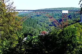 Тропа продолжается высоко над Вуппером и местами с неё открываются чудесные виды как на долину реки, так и на Мюнгстенский мост. На одном из поворотов туристы выходят в памятному знаку Тропы Клинка. Он был поставлен ещё до того времени, когда к Золингену был присоединён Нижний Бург и протяжённость тропы составляла 60 км, а не как сейчас 69,9 км. Чуть дальше — смотровая площадка-павильон, с которой отрывается грандиозный вид на Мюнгстенский мост. Это хорошее место для отдыха.
