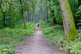 Тропа Клинка продолжается на север вдоль железной дороги, сначала по асфальту улицы Хёэр Хайде (Höher Heide), а затем по узкой тропе параллельно железной дороге. После пересечения Нуссбаум-штрассе (Nußbaumstraße) тропа вновь входит в лесной массив и ведёт туристов параллельно железной дороге до туннеля, по которому нужно перейти на её другую сторону и продолжать маршрут на север. При входе в жилую застройку Тропа Клинка поворачивает на улицу Бухвайценберг (Buchweizenberg) и через сотню метров по узкому переулку (влево) выводит в лесной массив. На этой тропе туристы проходят оборудованное место для отдыха и молитвы перед установленным католиками небольшим образом Божией Матери.