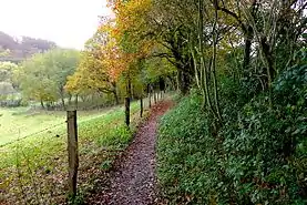 Тропа минует открытый в летнее время плавательный бассейн Хайде-Фрайбад (Heide-Freibad), выходит на улицу Герман-Лёнс-Вег (Hermann-Löns-Weg) (названную в память замечательного немецкого писателя, натуралиста и краеведа Германа Лёнса (Hermann Löns), жившего на рубеже XIX—XX веков и своими произведениями о природе похожего на русского писателя Михаила Пришвина). Тропа Клинка проходит рядом с небольшим зоопарком (Solinger Vogel- und Tierpark)[3] и сворачивает к городским кварталам Золингена у стадиона Унион (Stadion am Hermann-Löns-Weg).