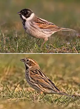 ![]() Самец (сверху) и самка тростниковой овсянки | ||||||||||