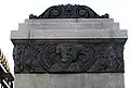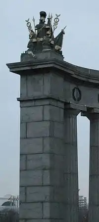 Ограда Александровского сада: пилоны ограды украшены бронзовыми рельефами с арматурным фризом на тему античных доспехов