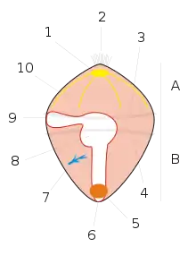 Мезодермальные органы личинки (главным образом мускульные волокна) развиваются из нескольких клеток, лежащих у краев бластопора и называемых мезенхимой. Другой мезедермальный зачаток представлен двумя крупными мезодермальными клетками — первичными мезобластами (иногда их называют телобластами).[1]