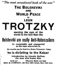 - Trotzky L. The Bolsheviki and world peace / Introduction by L. Steffens. — N. Y.: Boni and Liveright, 1918. — 239 p.