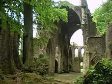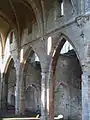 Впечатляющие руины — это все, что осталось от церкви аббатства, построенной между 1160 и 1190 годами, первоначально около 70 метров в длину и 40 метров в ширину через трансепт, по крестообразному плану. На портале доминируют три больших окна с круглыми арками. Нижняя часть объемного большого окна-розы сохранилась, заполняющая почти всю ширину западного фронта. Первые три нефа заметно шире остальных. Первый свод был утрачен, но еще три свода остались, опирающиеся на массивные консоли. Своды следующих трех отсеков рухнули в XIX веке. Боковые проходы имеют цилиндрический свод и отделены от нефа остроконечными арками. Между 1785 и 1789 годами прямоугольный хор и трансепт с тремя часовнями обветшали почти до точки коллапса и были заменены полукруглым окончанием на восточной стороне трансепта[3].