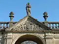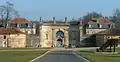 Монументальные ворота датируются перестройкой XVIII века. Они имеют вогнутый фасад с четырьмя очень большими пилястрами с коринфскими ордерами и поддерживает террасу, окруженную балюстрадой. За внутренним двором стоят дальние ворота с гербом и зданием в стиле периода правления Людовика XV.