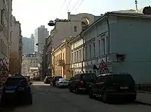 ![]() Начало Трубниковского переулка. Вид от Спасопесковской площадки. | |