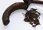 - Создание ролл-табаков. В рамках этого метода табачные листья плотно скручиваются в трубку и ферментируются в таком виде. Также в середину такой трубки может быть вложен предварительно нарезанный табак (в том числе и иного сорта), который плотно обжимается листьями. В продажу такой табак поступает порезанный с торца трубки.