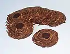 Редкий тип нарезки, для производства которой табачные листья различных сортов (в зависимости от требуемой смеси) скручиваются в рулет, диаметром несколько сантиметров, выдерживаются и нарезаются с торца тонкими кружочками, «монетками» (изредка так и называемыми — coins). Трубку, в зависимости от величины чаши и диаметра кружков, можно набивать как целыми кружками, так и растирать перед набивкой. |