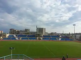 Стадион имеет две трибуны и легкоатлетические дорожки.