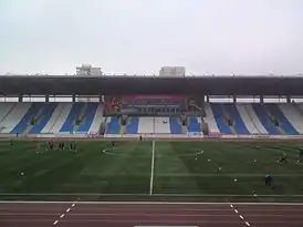- Трибуны стадиона носят названия «Богатырская» (восточная) и «Знатная» (западная)[4].