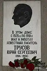 И действительно, на доме, где жил Юрий Трусов, висит мемориальная доска с его бронзовым профилем.