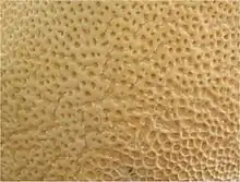 Гименофор трубчатый, светлый (белый, желтоватый), с крупными угловатыми ячейками. Шляпки обычно растут на пнях и деревьях группами. Споры белые.