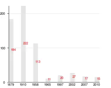 Число жителей по семейным спискам 1879 г.: 85 м. п., 99 ж. п.; по приходским сведениям 1879 г.: 87 м. п., 90 ж. п.[2]