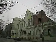 - В том же 1915 году напротив храма Гольберги начали строительство трёхэтажного замка-особняка по проекту архитектора В. А. Эстровича. Это здание сохранилось до нашего времени (улица Первой Конной армии, 104, городская санэпидемстанция).